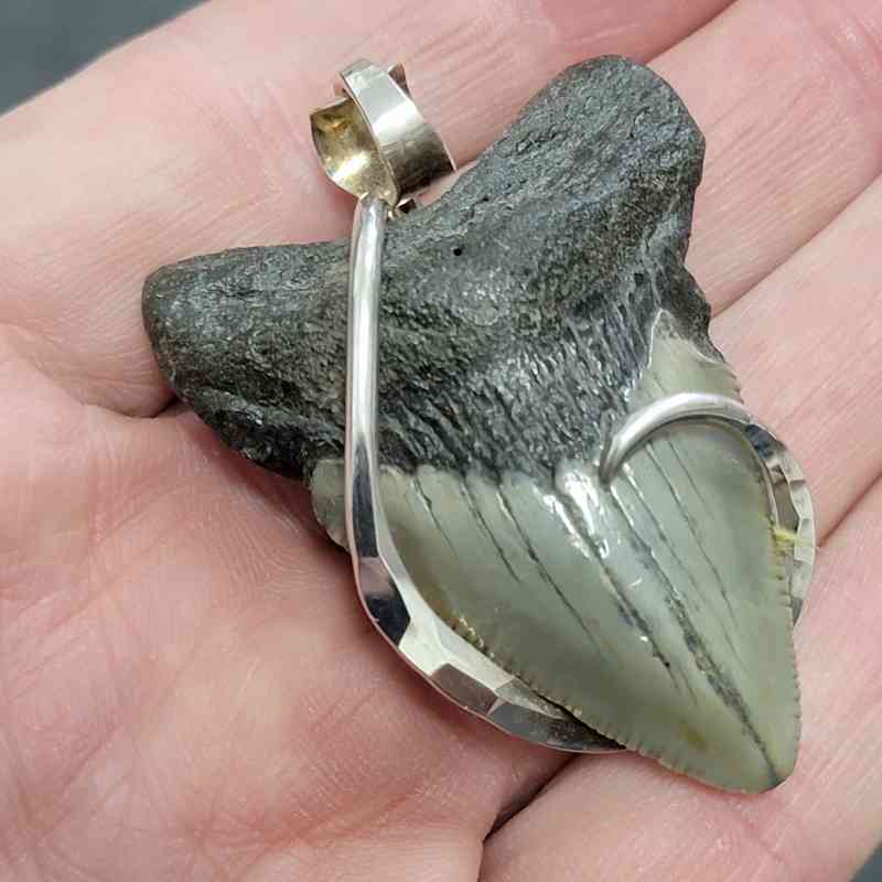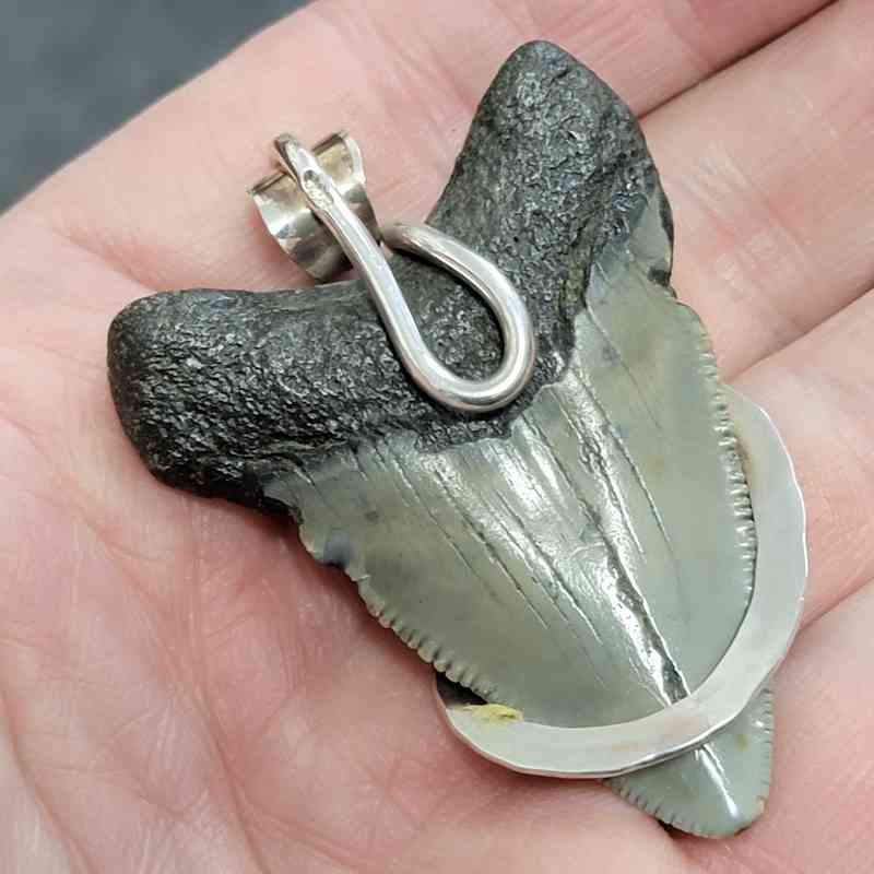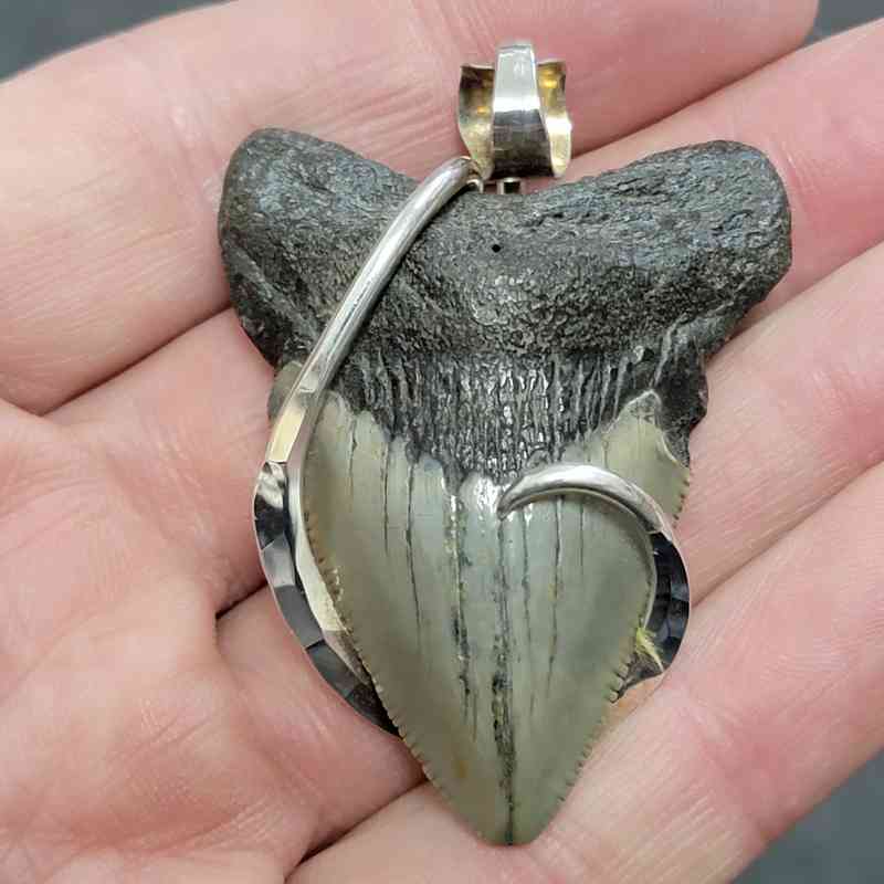 Home / Necklace and Pendants / Silver Hook Wrapped Megalodon Necklace Pendant / Silver Hook Wrapped Megalodon Tooth – JTMEGSILVERHW-4 Silver Hook Wrapped Megalodon Tooth – JTMEGSILVERHW-4$185.00 2 1/8″ – .925 Sterling Silver Hook Wrapped Megalodon Shark Tooth with Dark Brown Root with Gray Enamel In stock Silver Hook Wrapped Megalodon Tooth - JTMEGSILVERHW-4 quantity Add to cart Buy with SKU: JTMEGSILVERHW-4 Category: Silver Hook Wrapped Megalodon Necklace Pendant Tags: Authentic Fossil Megalodon Tooth, Handmade Shark Tooth Necklace, Megalodon Tooth Pendant, Silver Megalodon Tooth Jewelry, Sterling Silver Shark Tooth Pendant, Unique Megalodon Tooth Jewelry Additional information Additional information Weight 4 oz You may also like… 18″ – 2mm .925 Sterling Silver Byzantine Chain $140.00 Add to cart 20″ 2mm .925 Sterling Silver Byzantine Chain Necklace $140.00 Add to cart Shark Teeth & Fossil Identification Guide $25.00 Add to cart