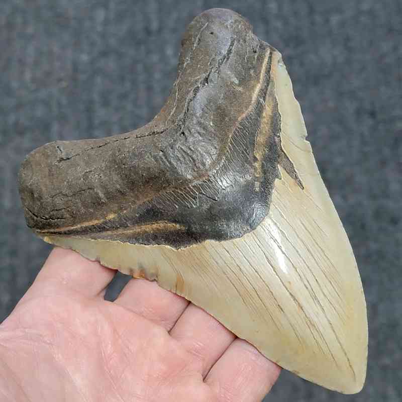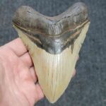 5 5/8+” – Megalodon Shark Tooth with Dark Brown Root with Tan Enamel