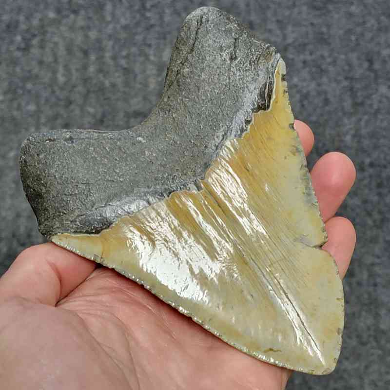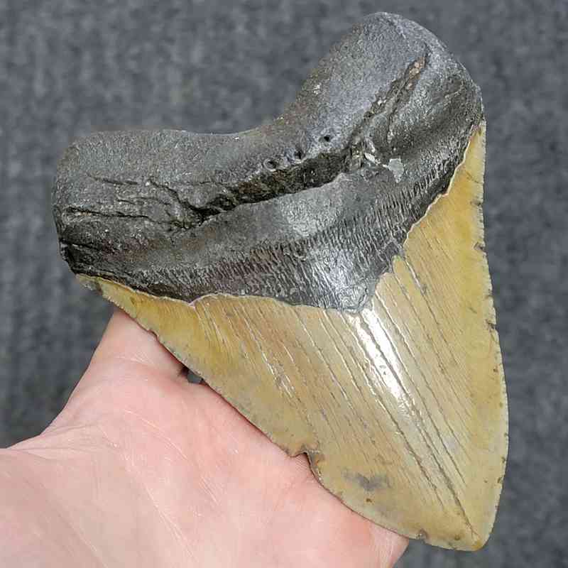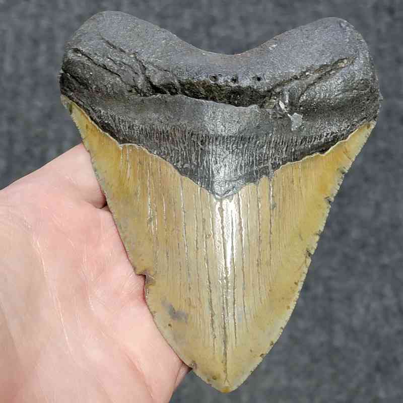 5 1/2+” – Megalodon Shark Tooth with Dark Brown Root with Tan Enamel